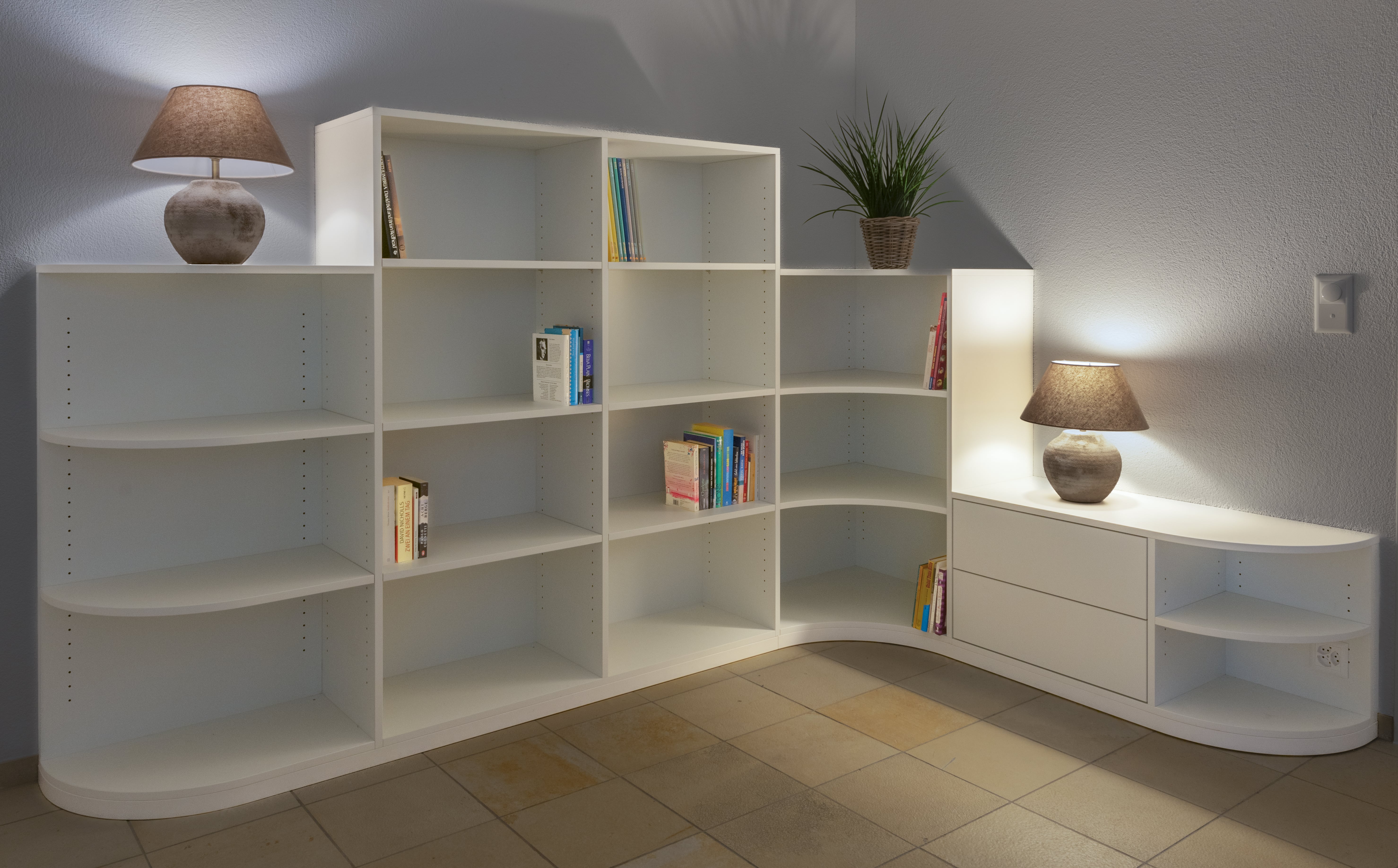 Bücher, Ordner, Drucker, Schreibutensilien, Unterlagen – wo gearbeitet wird, braucht es auch Stauraum. Sagen Sie uns, welche Gegenstände in Ihrem Regal Platz finden sollen und auf welche Sie besonders oft zugreifen müssen. Wir tüfteln so lange, bis wir das ideale Regal-Konzept für Sie erarbeitet haben. Damit Sie alles schnell finden, an die wichtigsten Gegenstände leicht herankommen und sich jeden Tag aufs Neue über Ihr schickes Regal freuen dürfen.