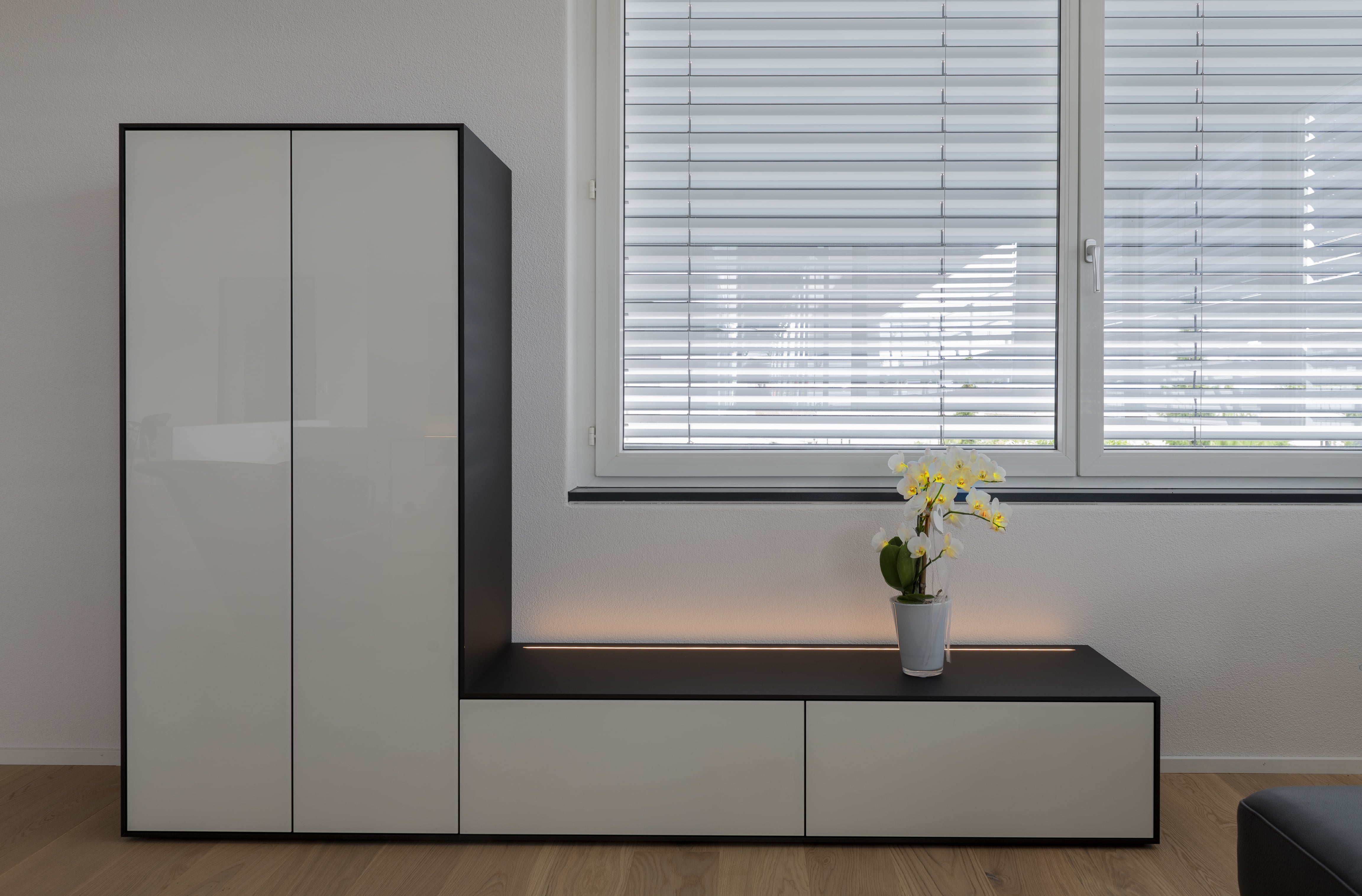 Perfekte Anpassung an Ihre Räumlichkeiten: Massgefertigte Sideboards und Lowboards werden exakt auf die Masse Ihrer Räume zugeschnitten. Egal, ob Sie eine Ecke optimal ausnutzen oder eine lange Wand elegant gestalten möchten – Ihre Möbel passen sich perfekt an.